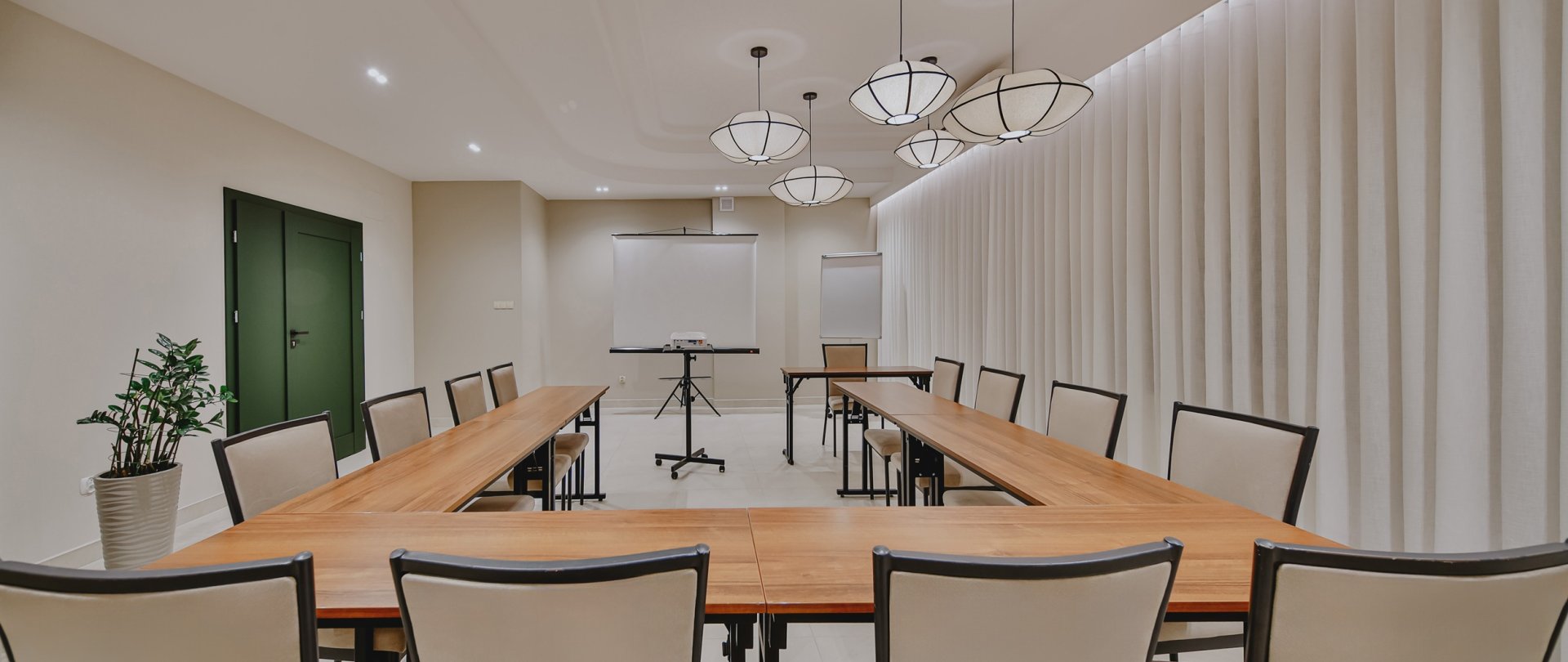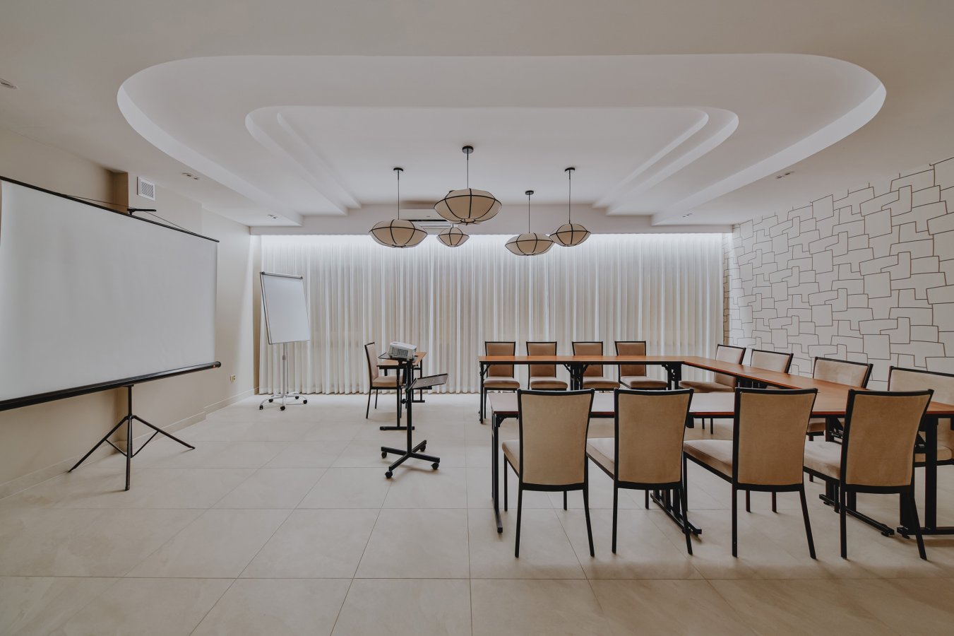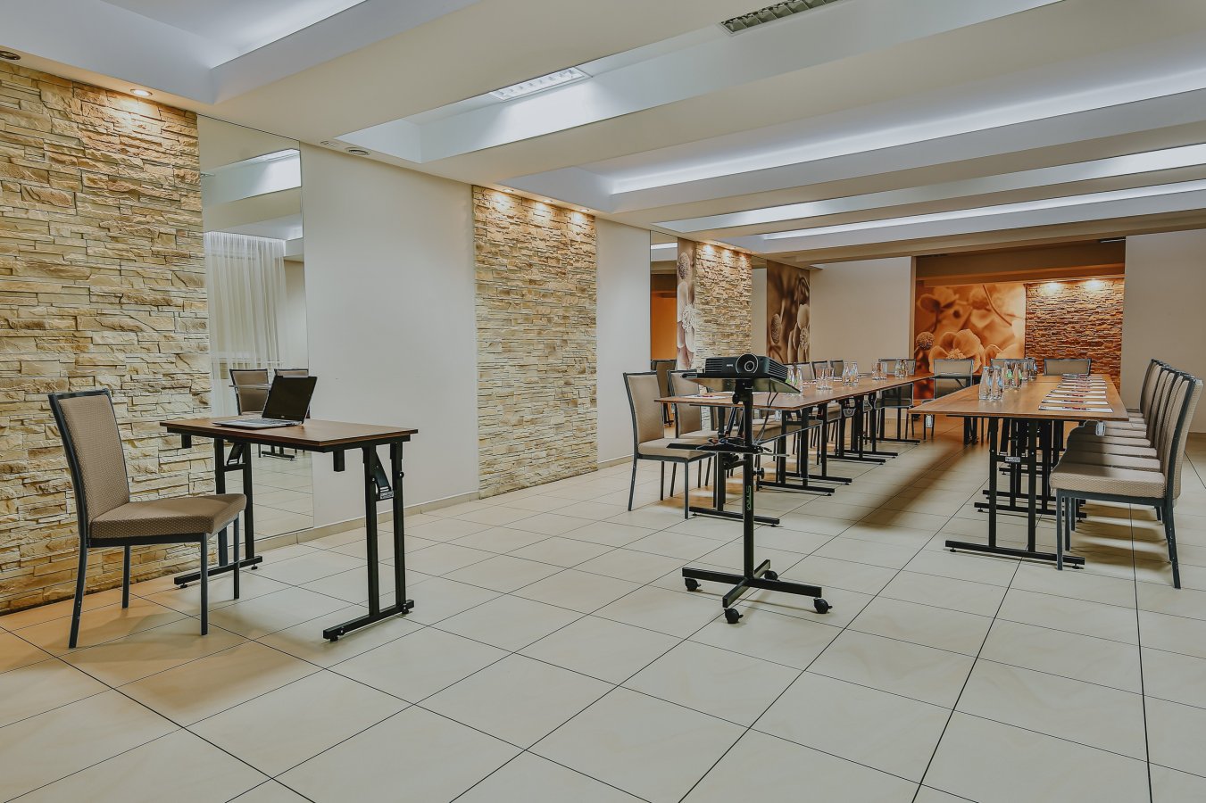 W naszym hotelu w Tarnowie dostępne są trzy główne sale konferencyjne do wynajęcia: biznesowa, kameralna oraz szkoleniowa. Sala biznesowa o powierzchni 30 m2 pomieści do 30 osób w układzie kinowym, co czyni ją idealną na mniejsze spotkania. Sala kameralna o powierzchni 40 m2 oferuje miejsce dla 40 osób, a jej elastyczny układ pozwala na różnorodne aranżacje. Największa sala szkoleniowa o powierzchni 90 m2 może pomieścić aż 80 osób w układzie kinowym, co czyni ją doskonałym wyborem na większe konferencje. W każdym z pomieszczeń istnieje możliwość dostosowania układu stołów i krzeseł do specyfiki danego spotkania.